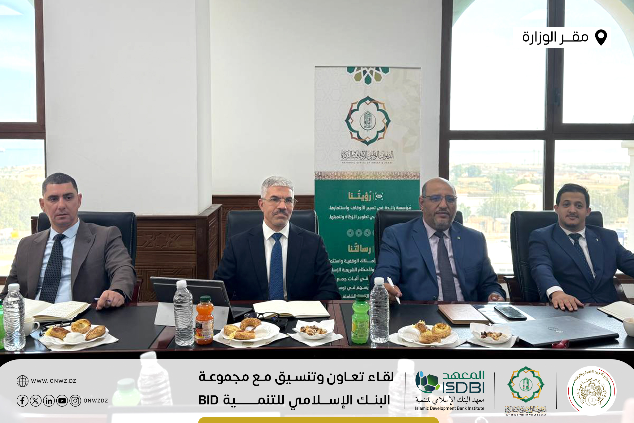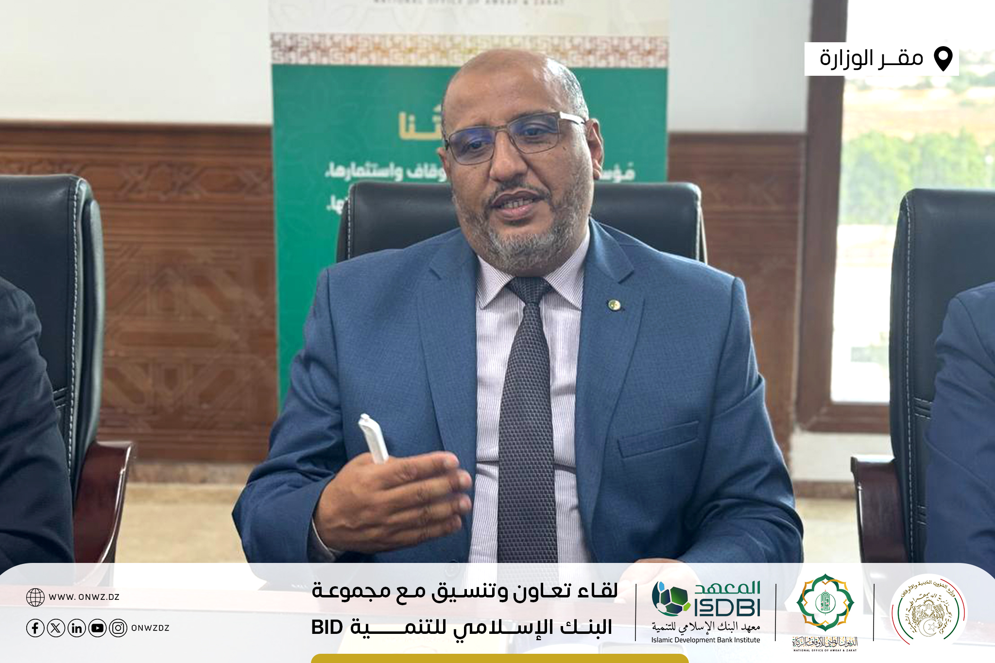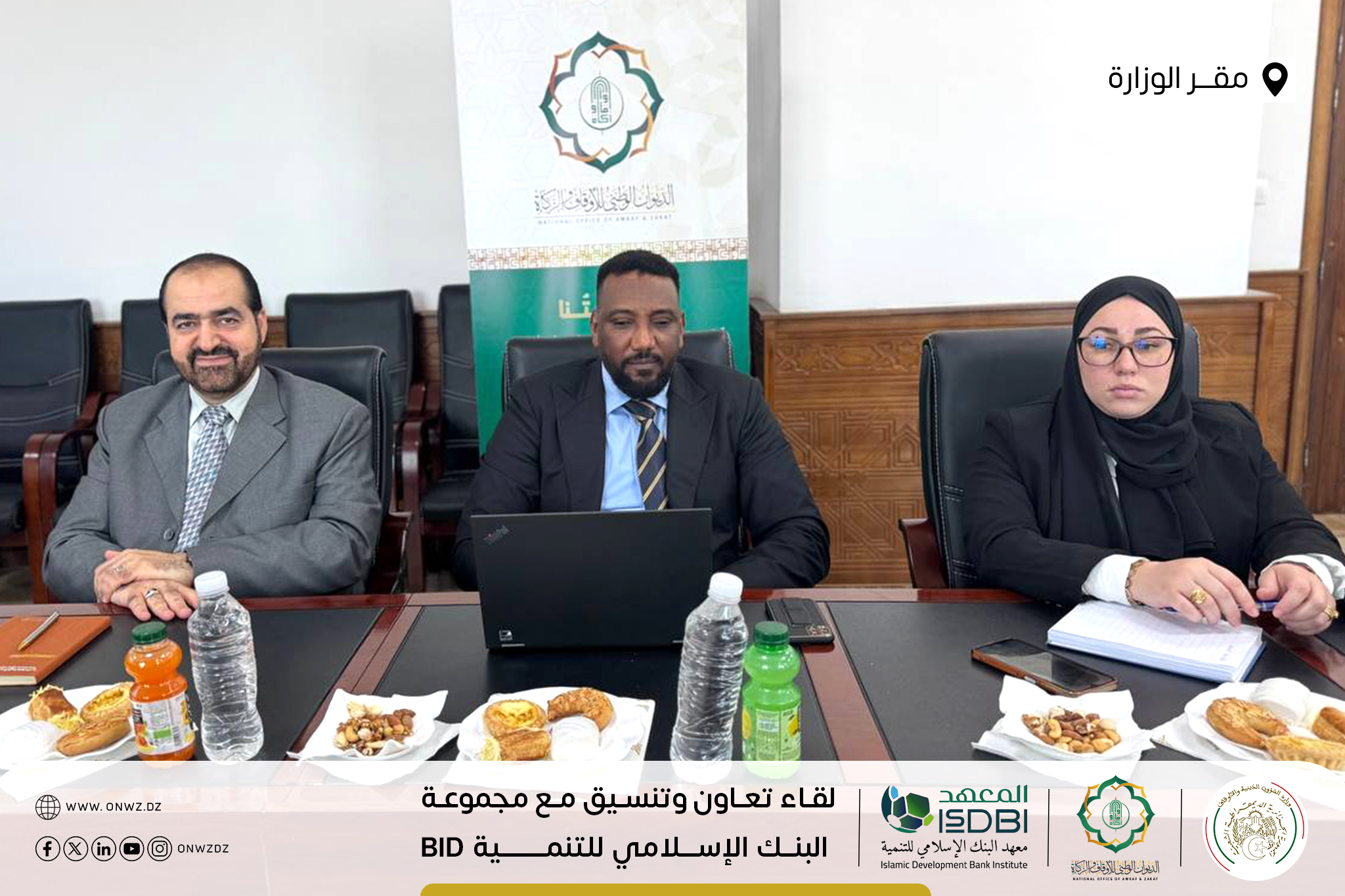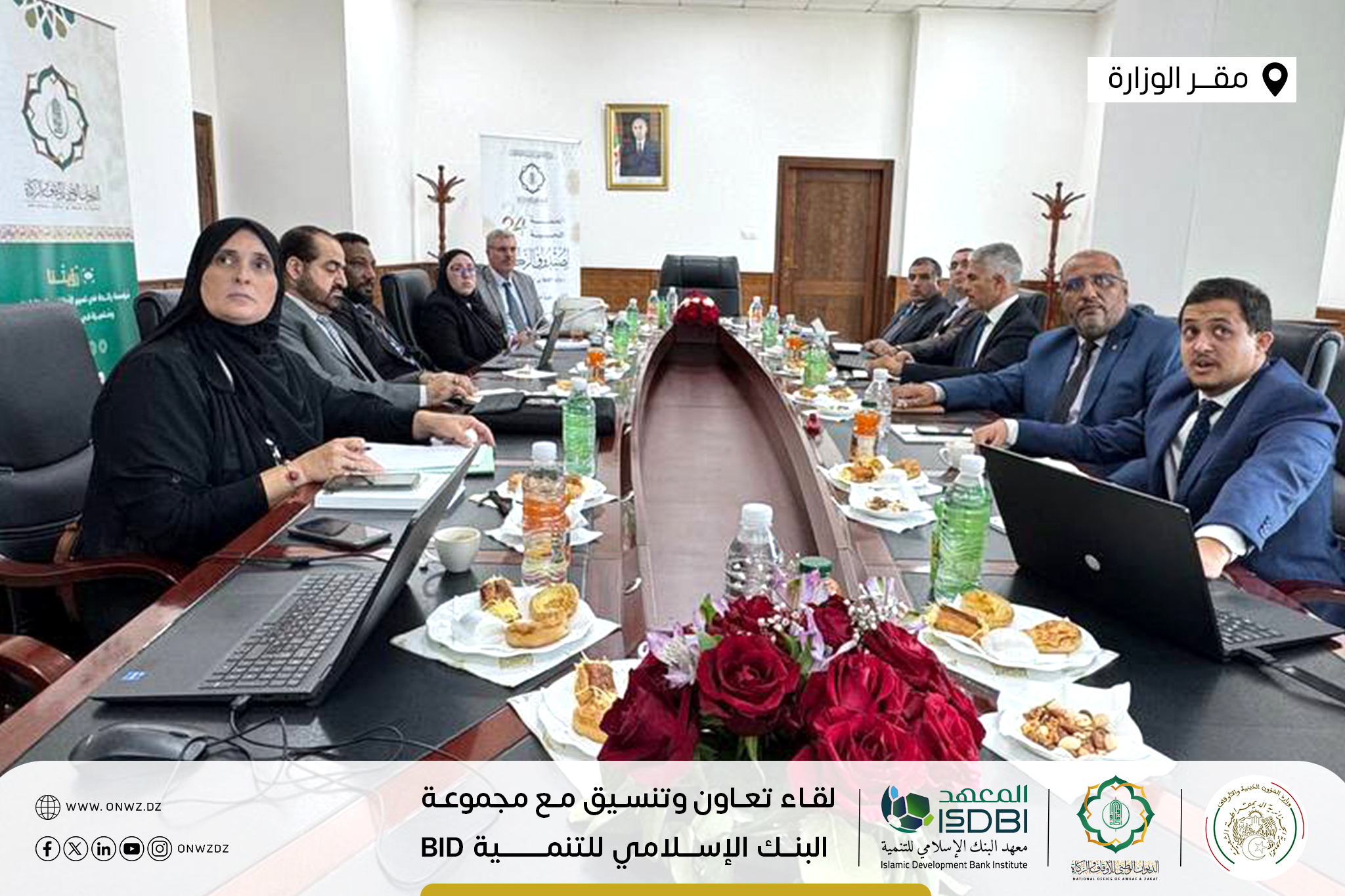 تَحت إشرَاف وزَارة الشُّؤون الدّينيَّة والأَوقَاف ووزَارة المَاليَّة … تَتواصَل أشغَال جَلسات التَعَاون والتَنسيق في يومها الثّاني والأخير بَين الديوَان الوَطني للأوقَاف والزَّكاة ووَفد مِن مَعهد البَنك الإسلاَمي للتَّنمية التّابع لمَجموعة البنك الإسلَامي للتَّنمية Islamic Development Bank Group – isdb.org ، بمَقر وزارة الشؤون الدينية والأوقاف الجزائر.
