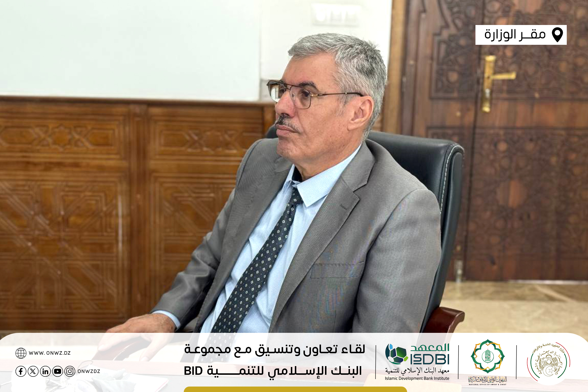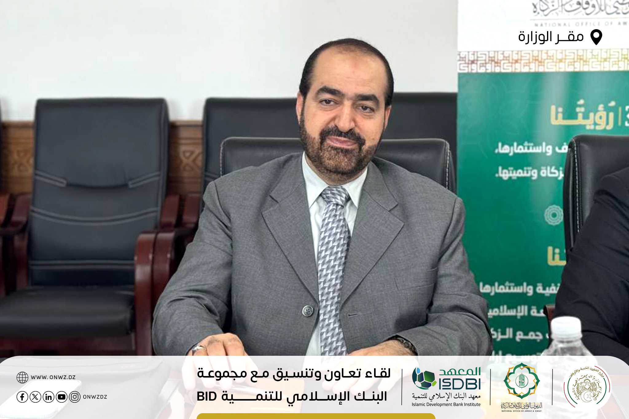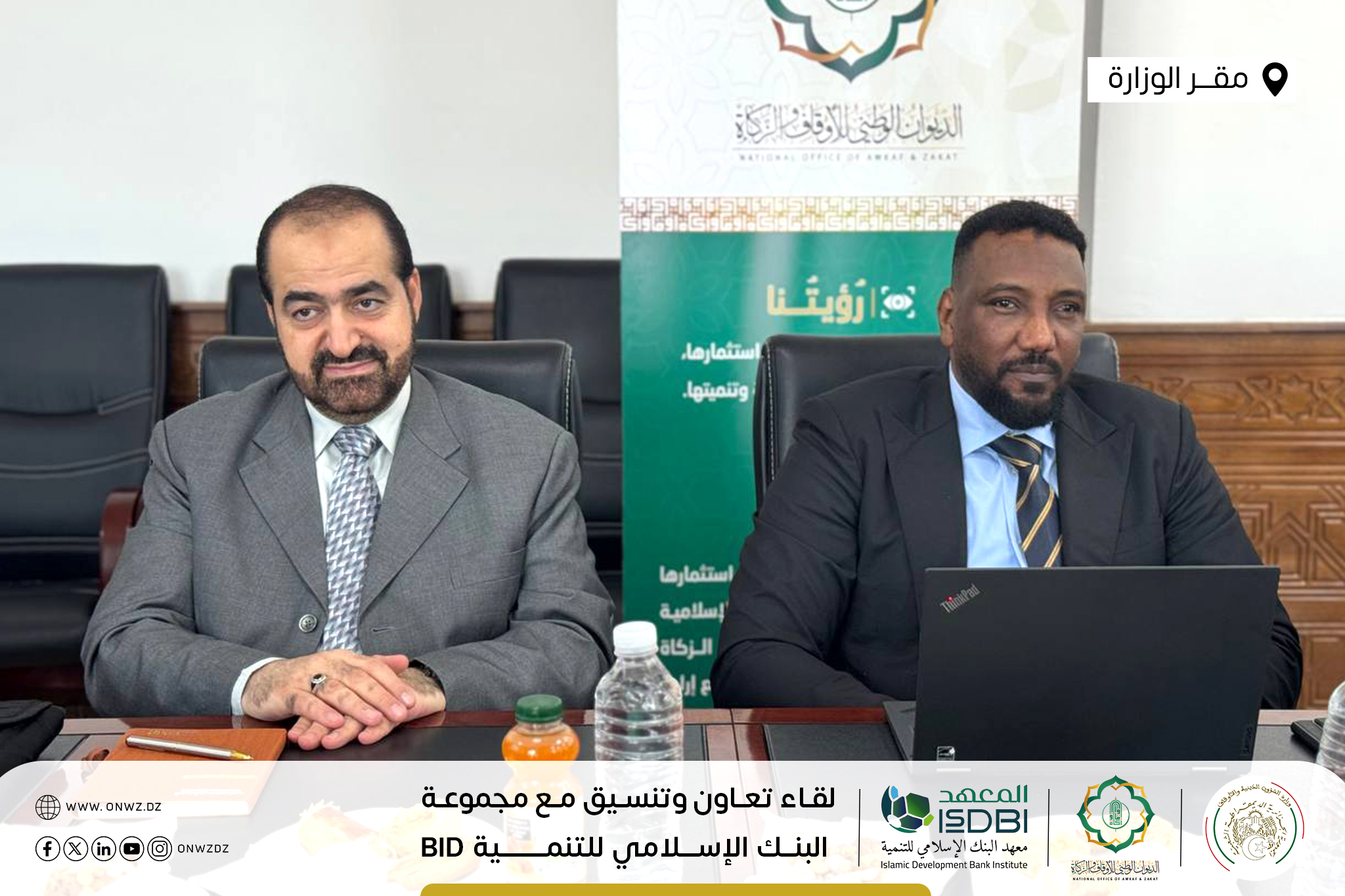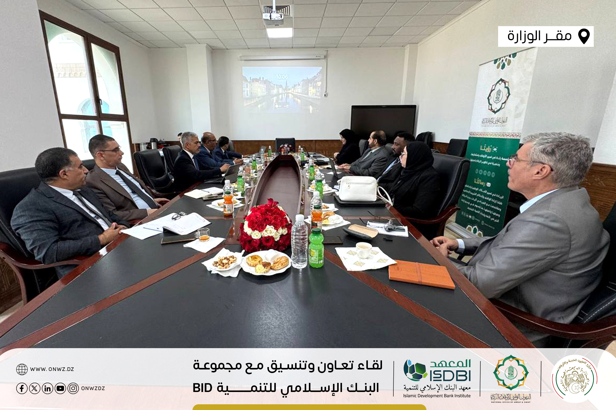 تَحت إشرَاف وزَارة الشُّؤون الدّينيَّة والأَوقَاف ووزَارة المَاليَّة … تَتواصَل أشغَال جَلسات التَعَاون والتَنسيق في يومها الثّاني والأخير بَين الديوَان الوَطني للأوقَاف والزَّكاة ووَفد مِن مَعهد البَنك الإسلاَمي للتَّنمية التّابع لمَجموعة البنك الإسلَامي للتَّنمية Islamic Development Bank Group – isdb.org ، بمَقر وزارة الشؤون الدينية والأوقاف الجزائر.