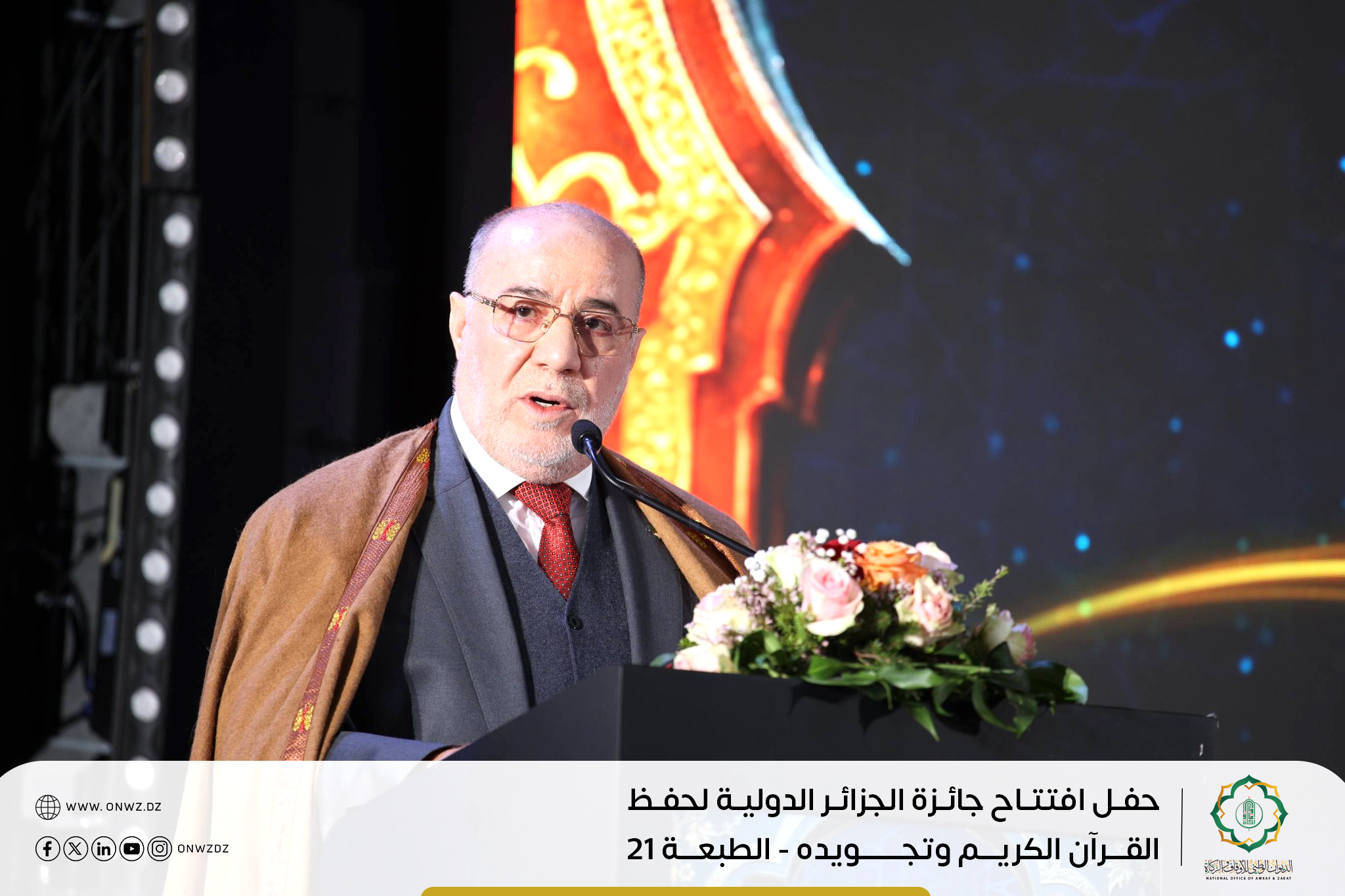 شارك المدير العام للديوان الوطني للأوقاف والزكاة الدكتور أمحمد بوزيان في فعاليات حفل افتتاح جائزة الجزائر الدولية في حفظ القرآن الكريم وتجويده – الطبعة 21 بالنادي الوطني للجيش ببني مسوس.