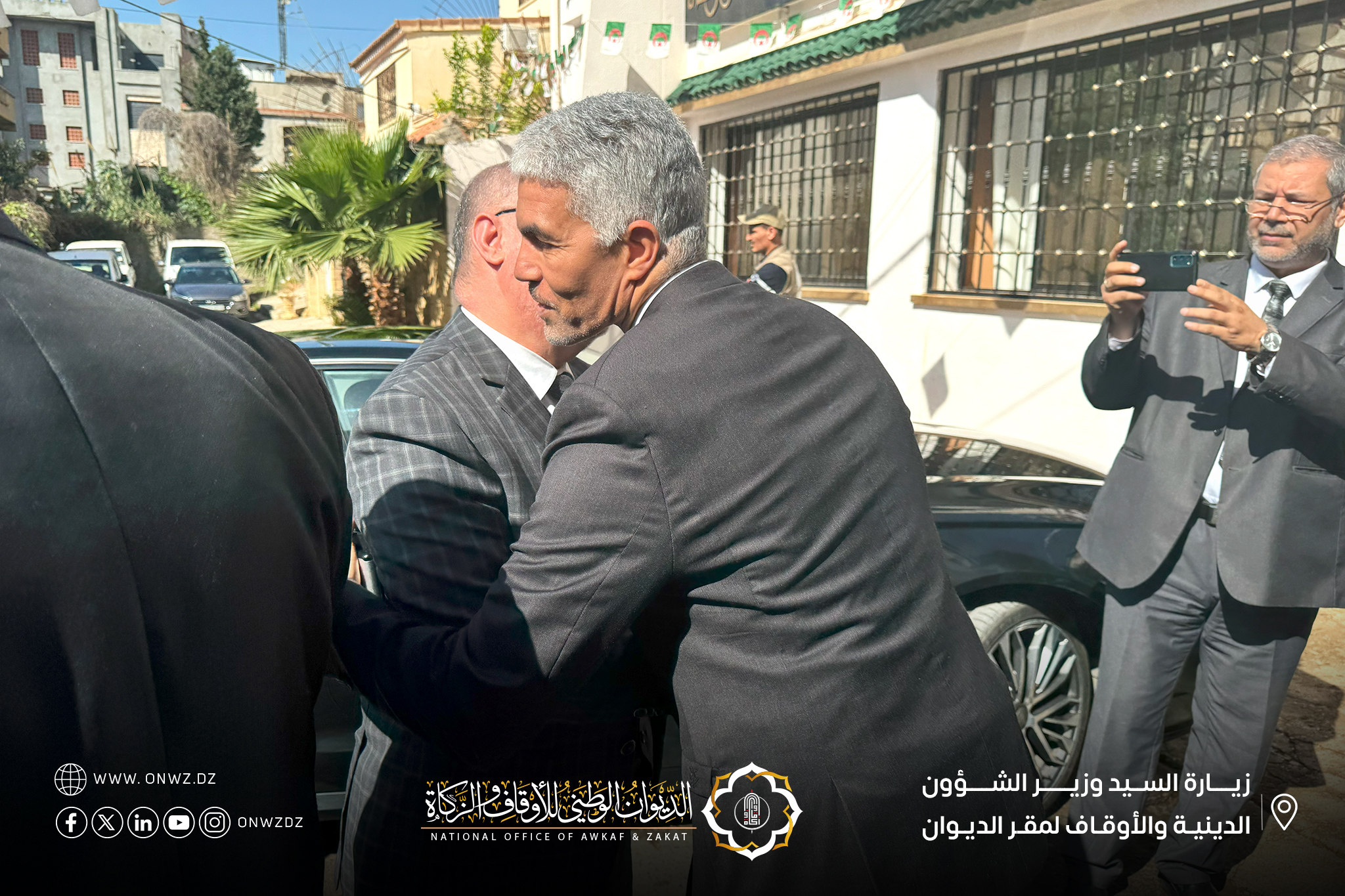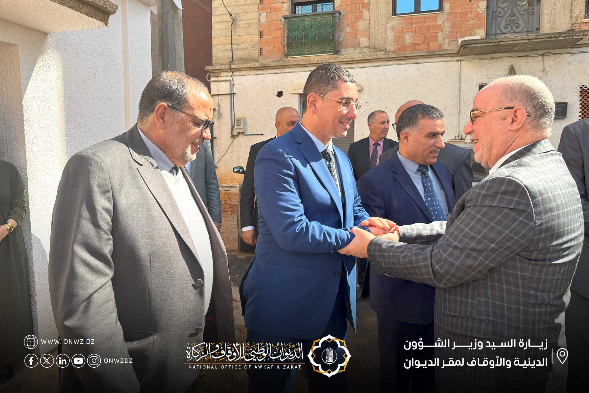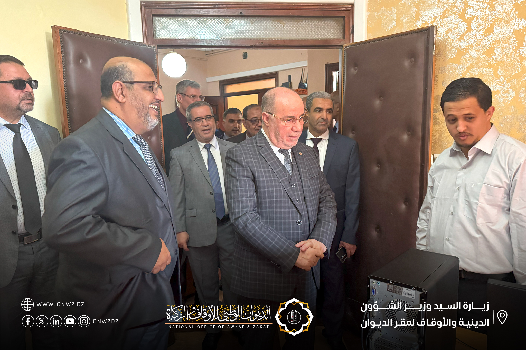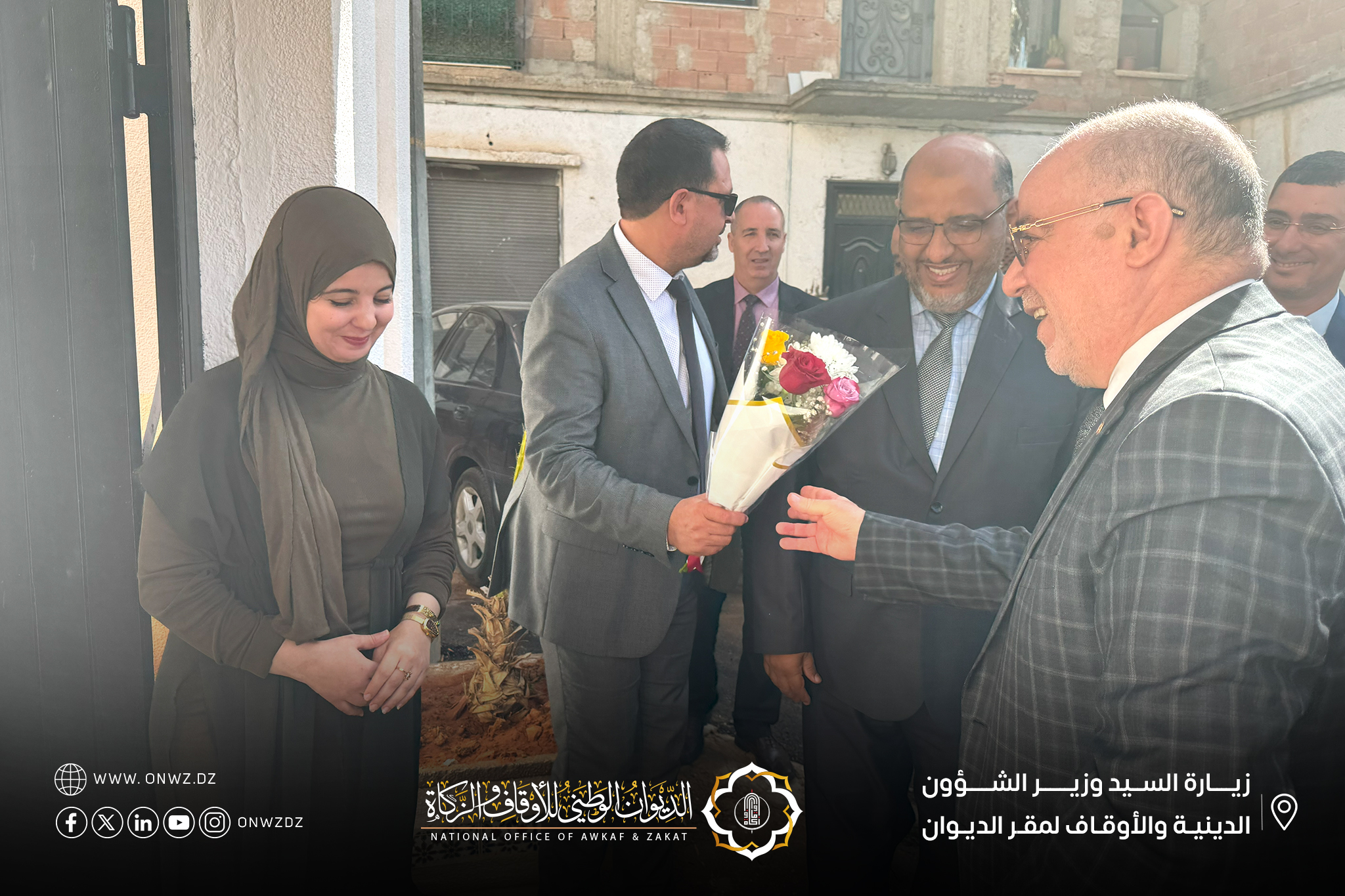 قَام السيّد وَزير الشُّؤون الدّينيّة والأوقَاف “الأستَاذ الدكتُور يُوسف بلمَهدي” مرفُوقًا بوفدٍ من إطارَات الوَزارة، بزيَارة تَفقّديَّة إلَى مقَرّ الدّيوَان الوَطني للأوقَاف والزَّكَاة، حيثُ كَان في استقبَاله المُدير العَام للدِّيوان “الدُّكتُور أمحمد بُوزيان” إلَى جَانب عَدد منَ الإطَارات والمُوظَّفين.