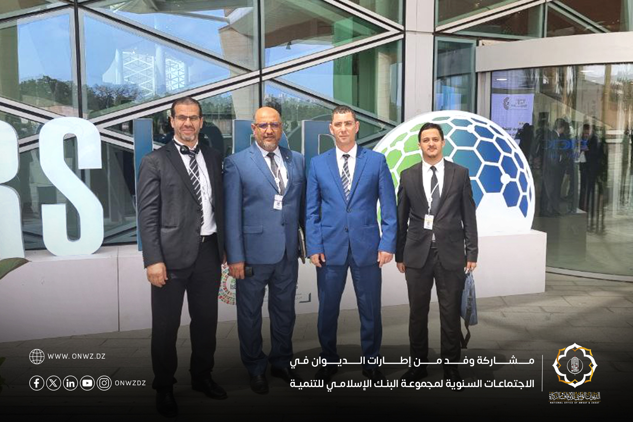 مُشَاركَة وَفد من إطَارَات الدّيَوان الوَطَني للأوقَاف وَالزَّكاة فِي فعَاليَّات الاجتمَاعات السَّنويَّة لمَجمُوعة البَنك الإسلاَمي للتنميَة، التي تُقَام تَحت الرعَاية السَّامية لرَئيس الجُمهُورية “السيّد عَبد المَجيد تبّون”، أيام 19-20-21-22 مَاي 2025، بالقَصر الدُّوَلي للمُؤتمَرات – عَبد الحَفيظ رحَّال.